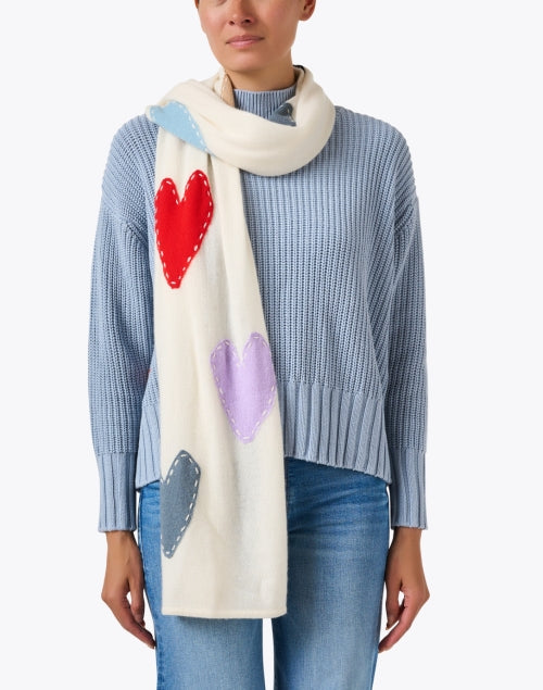 Kerri RosenthalCream Multi Heart Cashmere Scarf
