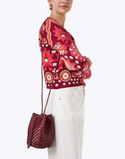 Dragon DiffusionPompom Double Jump Bordeaux Woven Leather Bucket Bag
