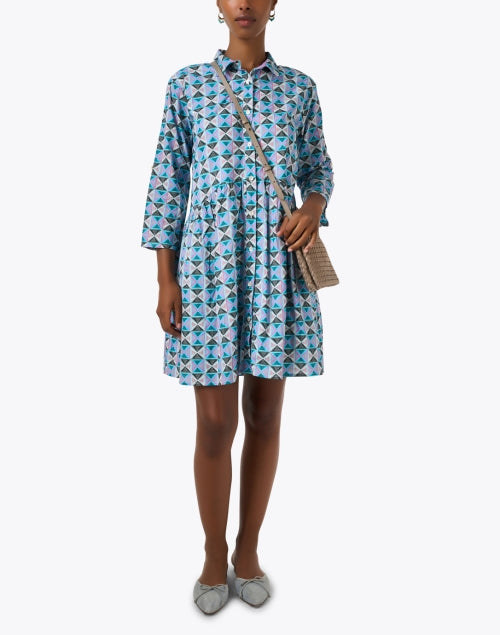 Ro's GardenDeauville Blue Multi Print Cotton Shirt Dress