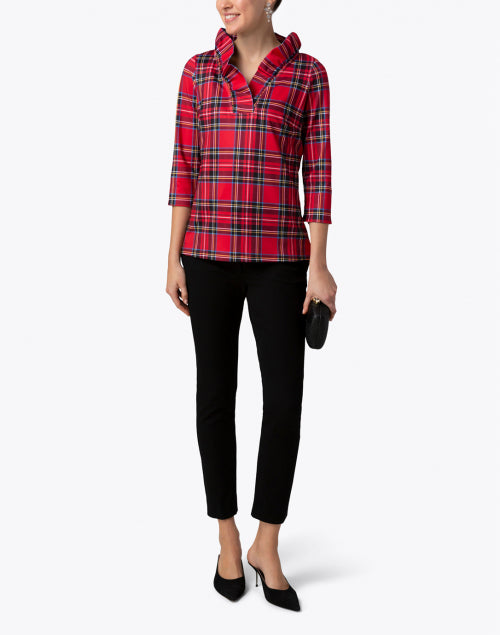 Gretchen ScottRed Tartan Plaid Ruffleneck Top