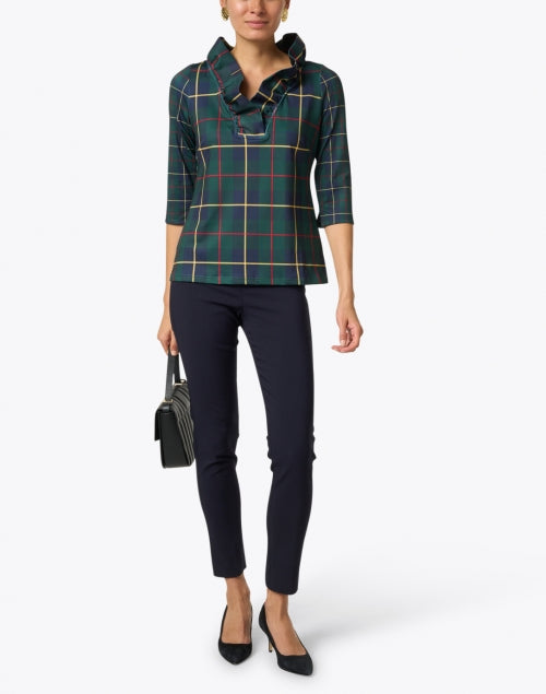 Gretchen ScottPlaidly Green Plaid Ruffle Neck Top