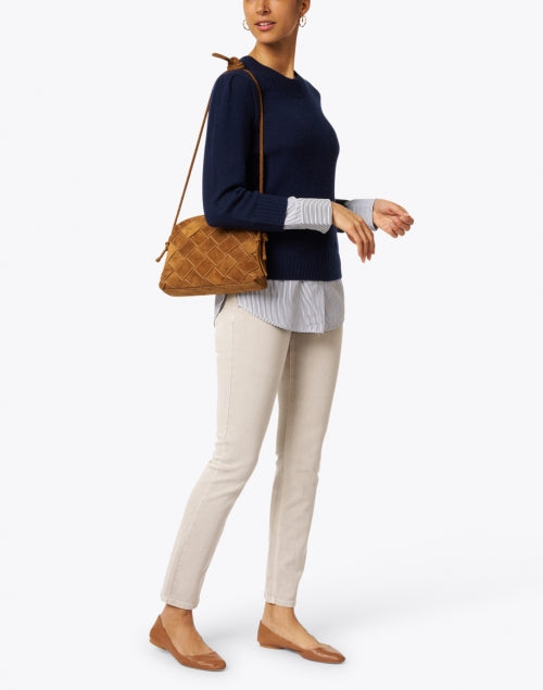 Brochu WalkerEton Navy Wool Cashmere Sweater with Blue Stripe Underlayer