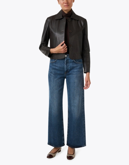 Weekend Max MaraBlanc Black Leather Wide Leg Pant