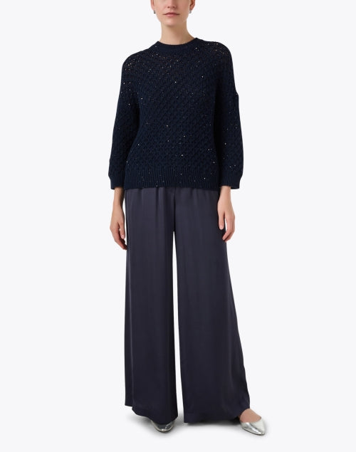 PesericoNavy Wide Leg Satin Pant