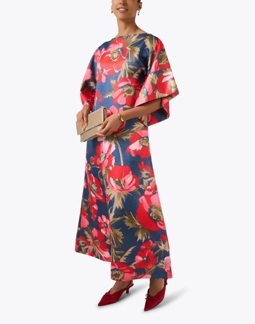 Frances ValentineSpinnaker Blue Poppy Print Dress