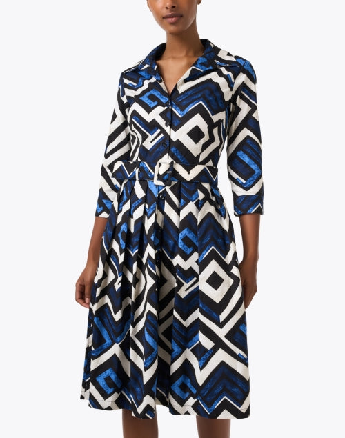 This chic Samantha Sung shirt dress is a modern interpretation of a timeless design. The classic a-line silhouette ensures a universally flattering fit, while the stunning geometric print gives it a flair. Pair it with neutral pumps, a clutch, and simple jewelry for any occasion.