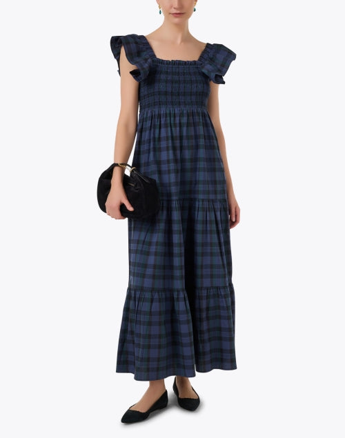 Sail to SableRed Plaid Puff Sleeve Smocked Midi Dress with a Tiered Skirt