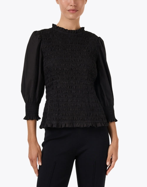 Black Puff Sleeve Smocked Top