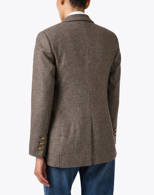 Add sophisticated charm to your fall outfitting with this houndstooth jacket from Weill. Its longline silhouette features feminine accents like gold buttons and patch pockets. Perfect for layering or worn on its own as a top, this piece is sure to be your new go-to for daytime outings.