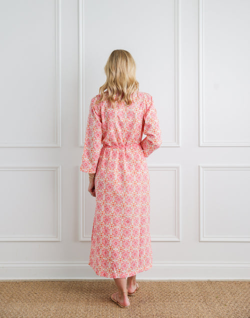 Effortlessly elegant, Pomegranate's shirt dress captures the charm of sunny days with its cheerful geometric print and feminine silhouette. Crafted from lightweight cotton, this breezy style features a flattering tie waist and side slits for easy movement. Pair it with sandals for a polished daytime look or elevate it with wedges and jewelry for an effortless warm-weather ensemble.