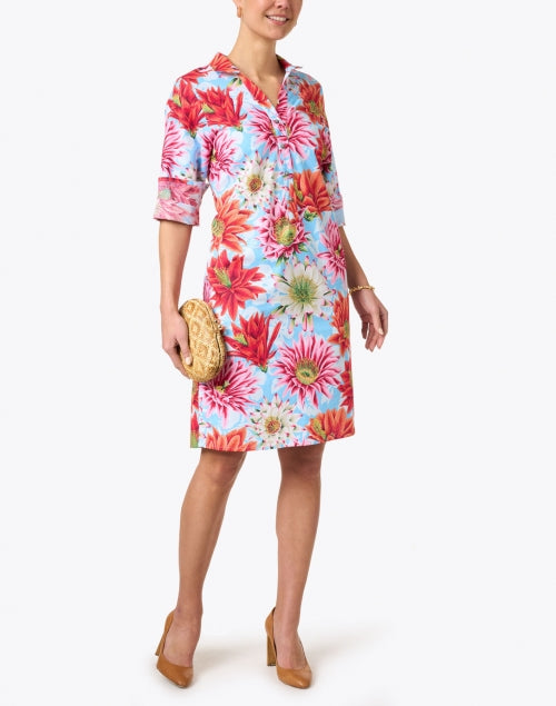 Capturing the essence of the bright, tropical flowers seen off the coast of Key Largo, Connie Roberson's Connie dress is a dream for spring. Its classic shirt dress silhouette has been cut from cool, crisp cotton and features a henley neckline and bracelet length sleeves. We recommend teaming it with neutral accessories to keep the vivid print in focus.