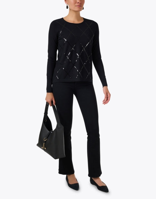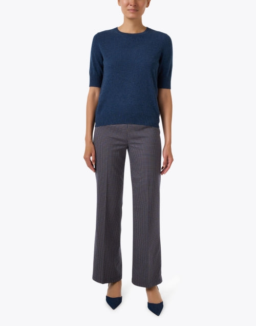 Brochu WalkerEton Navy Wool Cashmere Sweater with Blue Stripe Underlayer