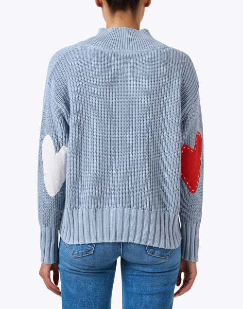 This cotton sweater is a fresh take on a classic, featuring a vibrant blue hue and modern mock neck design. Crafted from soft, breathable cotton, it’s detailed with a sweet heart for an elevated finish. Pair it with denim or crisp white pants for a polished, everyday look that feels as good as it looks.