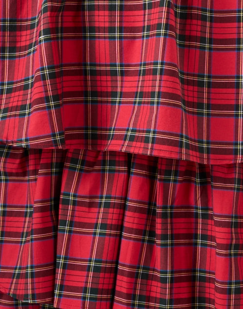 - Red Plaid Cotton Tartan Tiered Midi Skirt