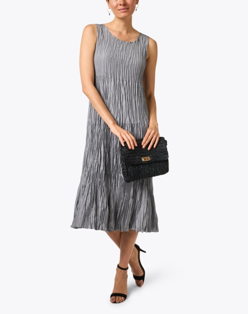 Eileen Fisher has amassed a following by creating elevated yet streamlined silhouettes, like this shift dress. The textured 100% silk silhouette is sleeveless and features a tiered skirt that moves beautifully. Our stylist recommends pairing it with heels and a coordinated clutch for a sophisticated night out look.