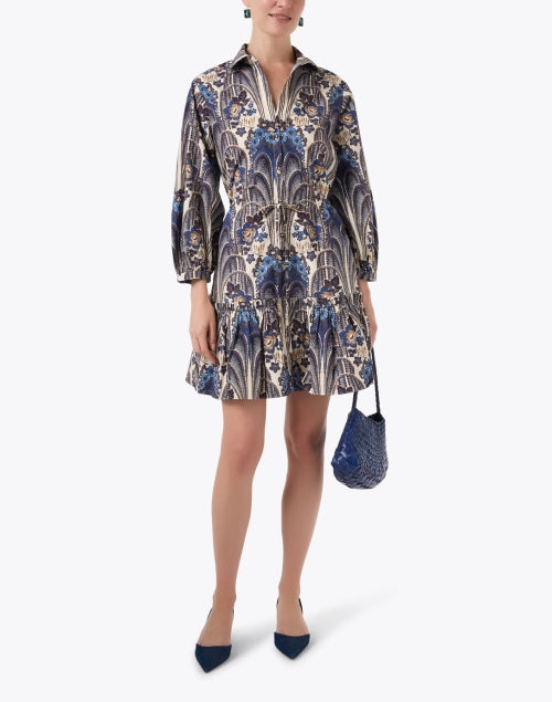 Cara CaraRobin Tan and Blue Print Cotton Shirt Dress