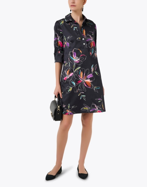 Hinson WuAileen Black Multi Floral Print Cotton Dress