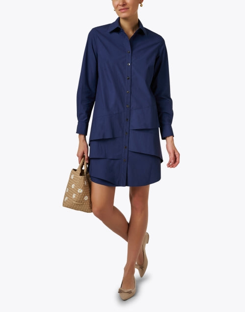 Jenna Navy Cotton Tiered Shirt Dress