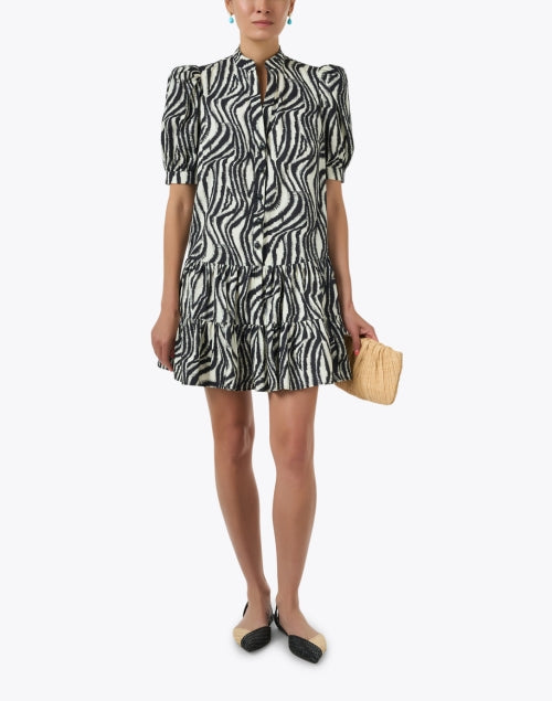 FinleyChantal Black and Ivory Print Cotton Linen Dress