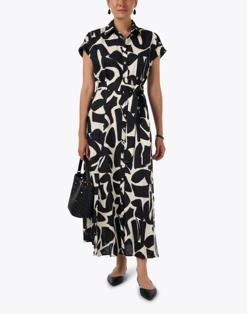 Chantal Black and Ivory Print Cotton Linen Dress