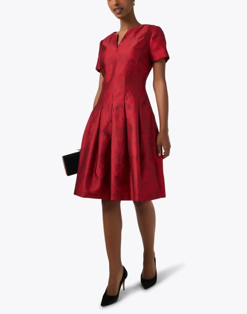 Bigio CollectionRed Jacquard Fit and Flare Dress