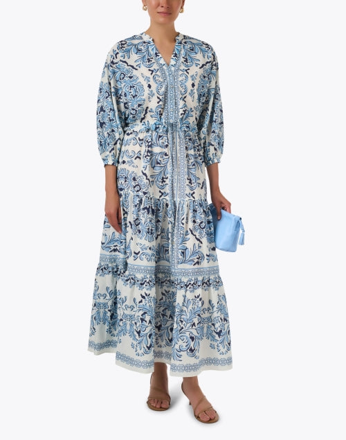 Cara CaraOctavia Blue and White Print Cotton Shirt Dress