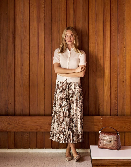 Samantha SungAudrey Pink Crane Print Cotton Stretch Dress